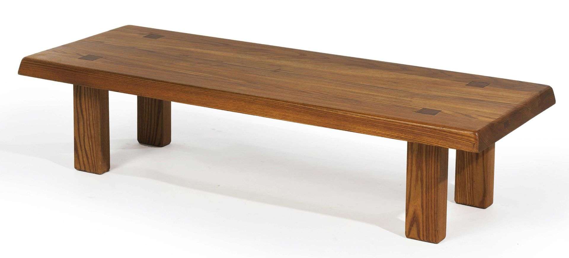 TABLE BASSE MODÈLE T08 EN ORME MASSIF Plateau rectangulaire supporté et traversé par quatre pieds de section carrée, montage tenon-mortaise.