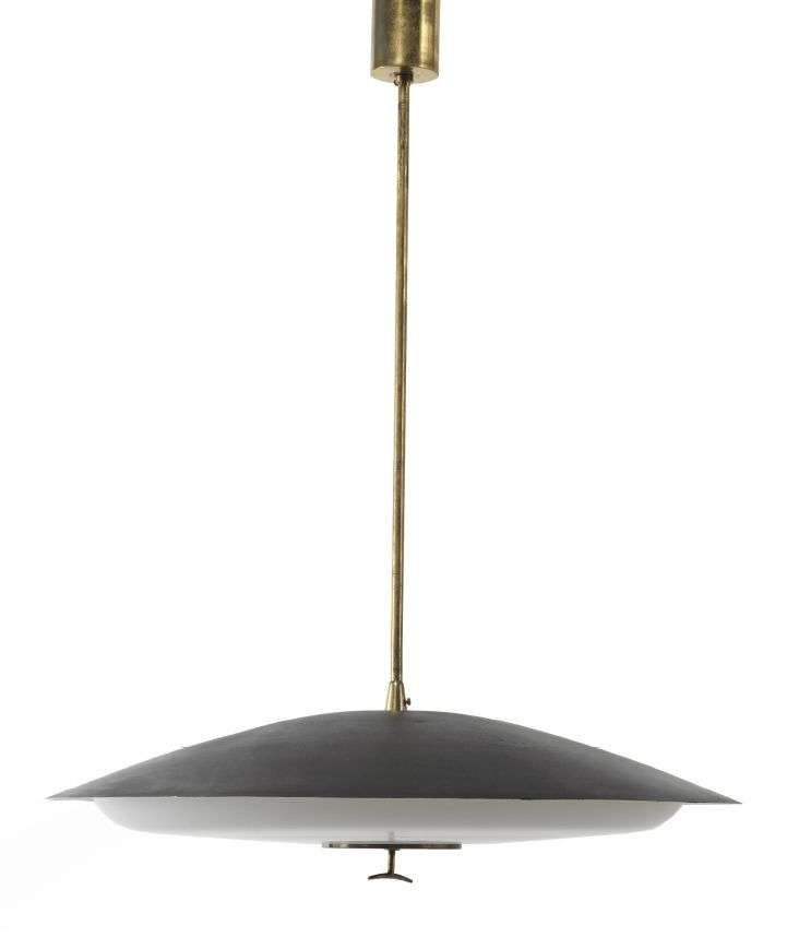 Brass, lacquered metal and glass «3070» ceiling light by John and Sylvia Reid, Disderot edition.