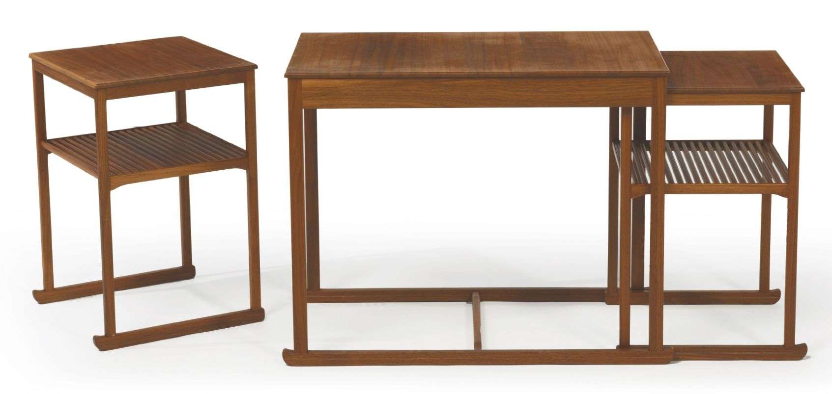 A walnut coffee/nesting «Släden» table by Carl Malmsten, stamped.