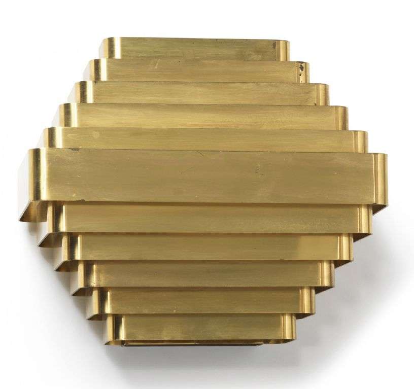 GRANDE APPLIQUE En laiton doré à onze bandeaux concentriques.