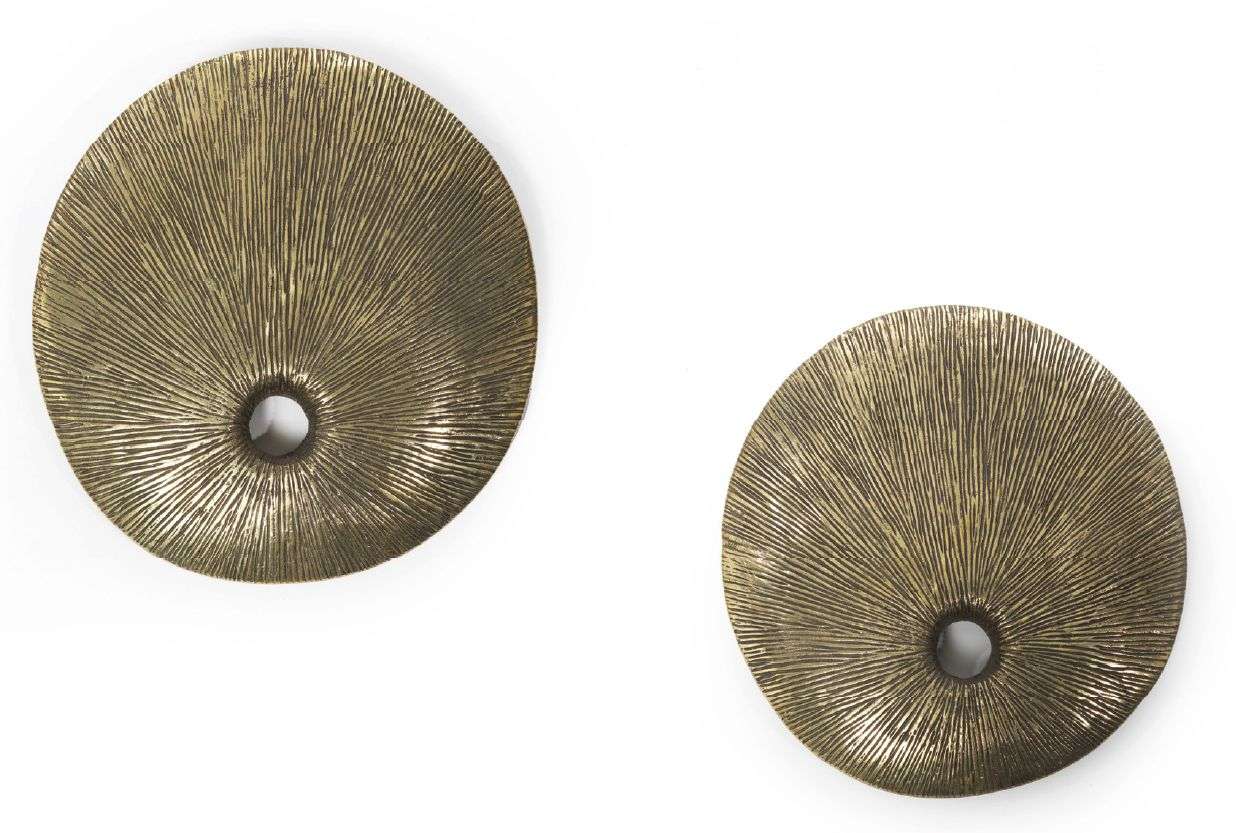 PAIRE D'APPLIQUES De forme circulaire, en bronze doré strié d'un motif rayonnant, présentant une ouverture décentrée.