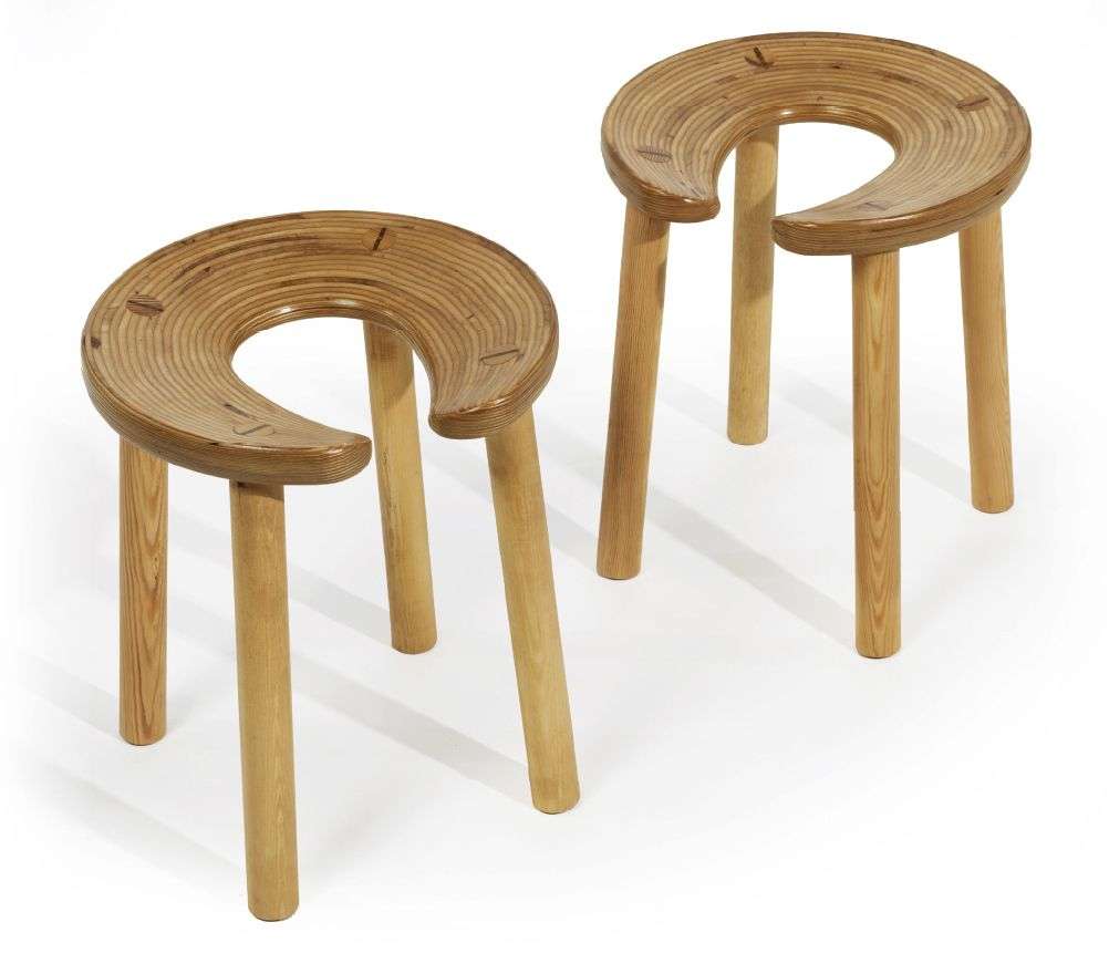 Pair of birch stools by Antti Nurmesniemi, signed.