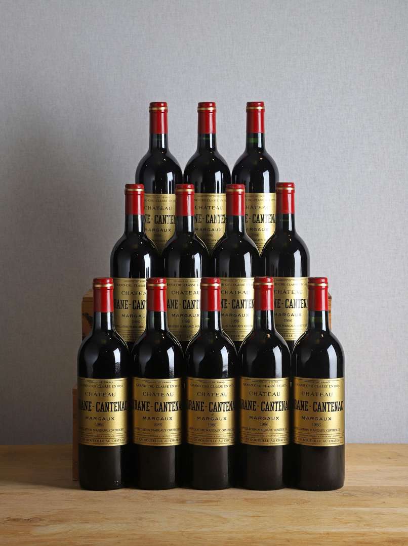 12 B CHATEAU BRANE-CANTENAC (Caisse Bois d'origine légèrement abimée) (1 e.l.a| 1 c.a. au sommet) - 1986 - GCC2 Margaux