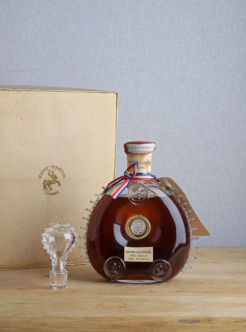 1 B COGNAC GRANDE CHAMPAGNE TRÈS VIEILLE ÂGE INCONNU 40% (Carafe Baccarat avec coffret) (L.B| années 60) - NM - Rémy Martin