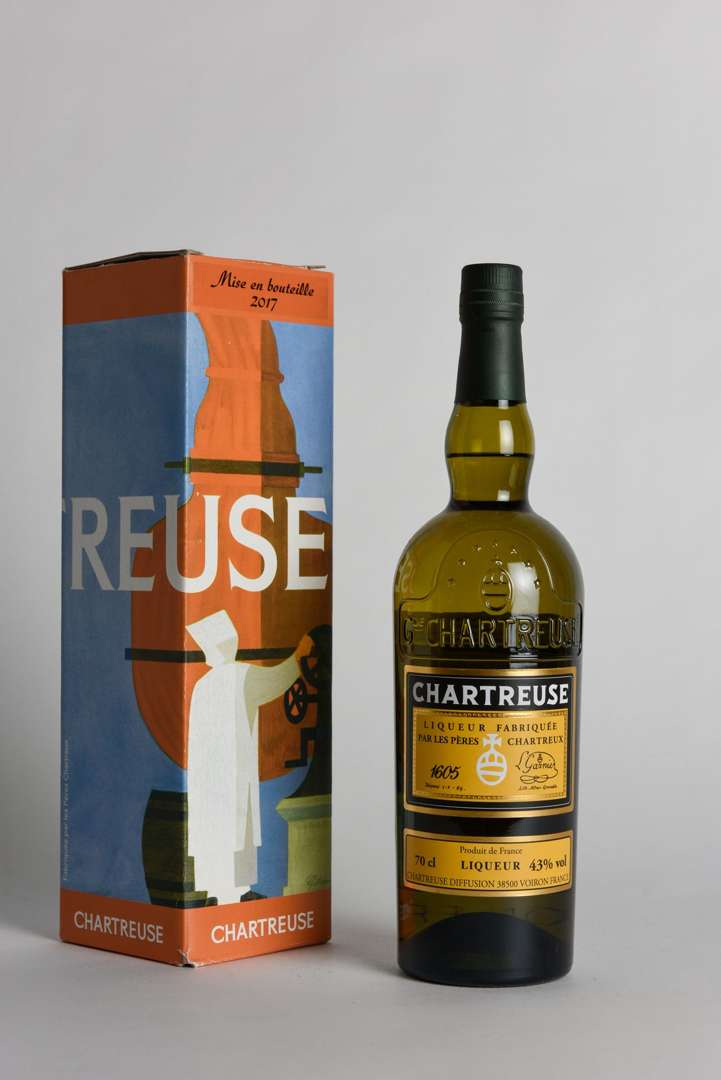 1 B CHARTREUSE JAUNE LA REINE DES LIQUEURS Édition limitée 70 cl 43% (étui) (mise 2017| édition limitée à 1084 bouteilles| Pass Import Allemagne) - NM - Pères Chartreux