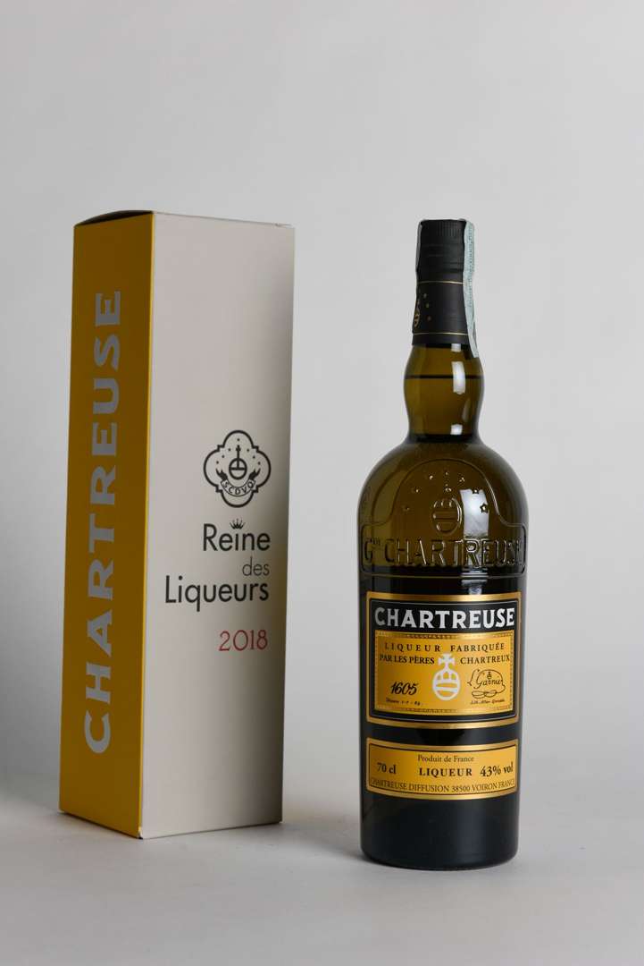 1 B CHARTREUSE JAUNE LA REINE DES LIQUEURS Édition limitée 70 cl 43% (étui) (mise 2018| édition limitée à 1084 bouteilles) - NM - Pères Chartreux