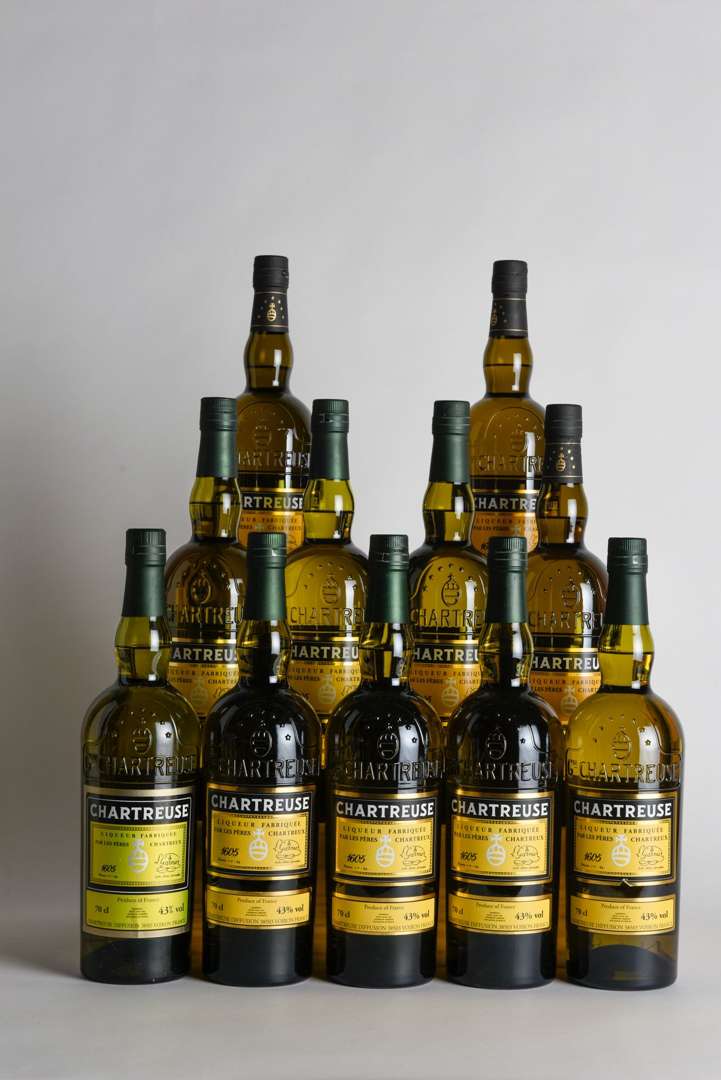 COLLECTION COMPLÉTE CHARTREUSES REINE DES LIQUEURS MILLÉSIMÉES DE 2010 A 2020 COMPRENANT 11 BOUTEILLES :