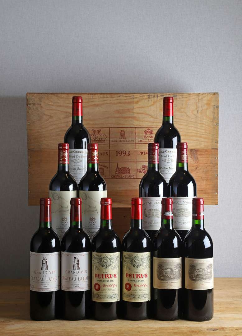 CAISSE BORDEAUX PRIMEURS DE 12 BOUTEILLES COMPRENANT (Caisse Bois d'origine) : - 1993 -