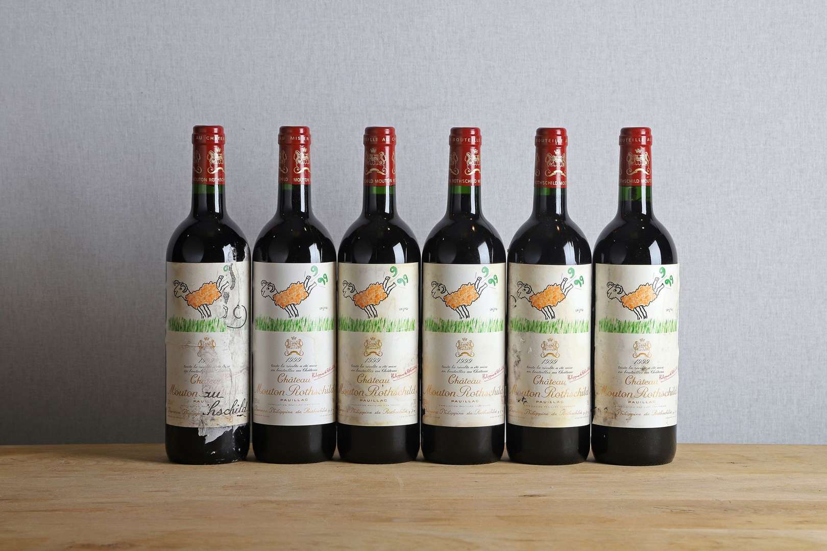 6 B CHÂTEAU MOUTON ROTHSCHILD (Caisse Bois d'origine avec pavillon supérieur sale et abimé) (e.t.h. dont 3 e.a.) - 1999 - GCC1 Pauillac