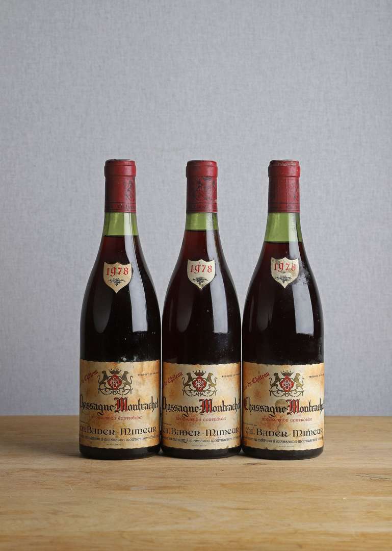 3 B CHASSAGNE-MONTRACHET Rouge (1 à 2,7 cm| e.t.h. légères| clm.s.) - 1978 - Bader-Mimeur