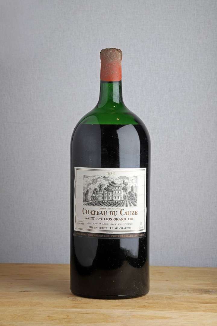 1 JERO CHÂTEAU DU CAUZE (Caisse Bois d'origine) (M.E| e.t.h| c.s. à c.c. avec traces de coulures) - 1986 - GC Saint-Emilion