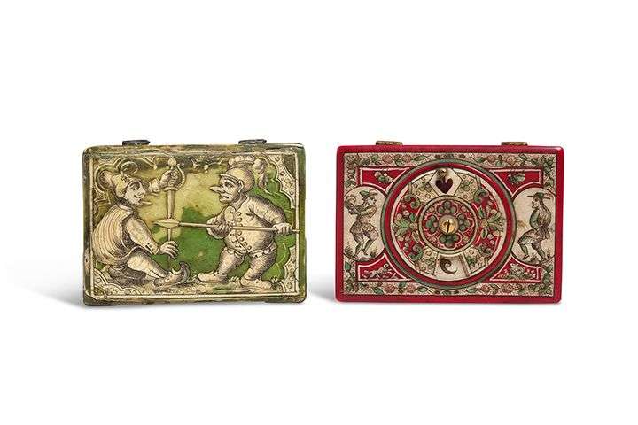 Boîte à jetons en ivoire polychrome