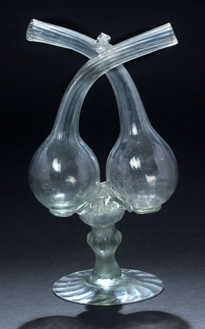 Guédoufle, huilier-vinaigrier en verre clair soufflé, jambe avec base circ
