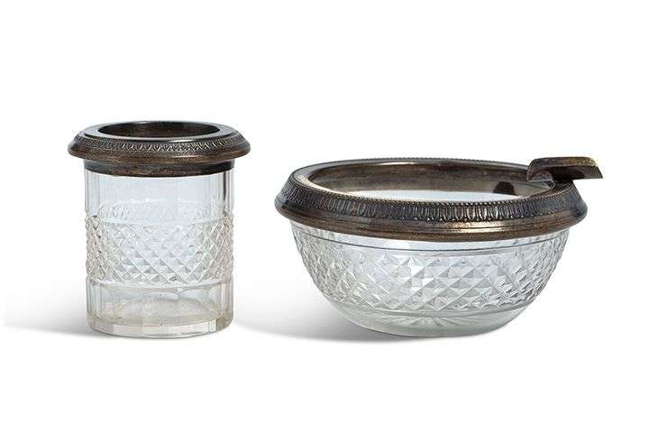 Cendrier de table en cristal taillÈ en facettes et monture en argent cisel
