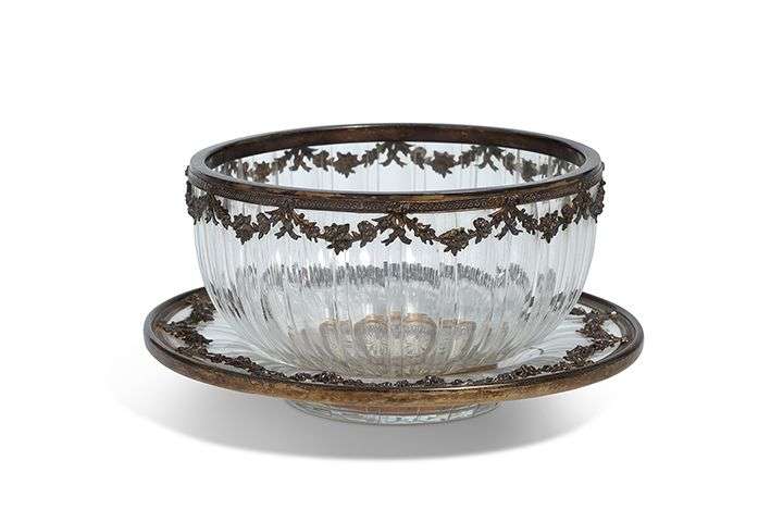 Coupe et assiette en cristal taillÈ et argent ‡ dÈcor de guirlandes de fle