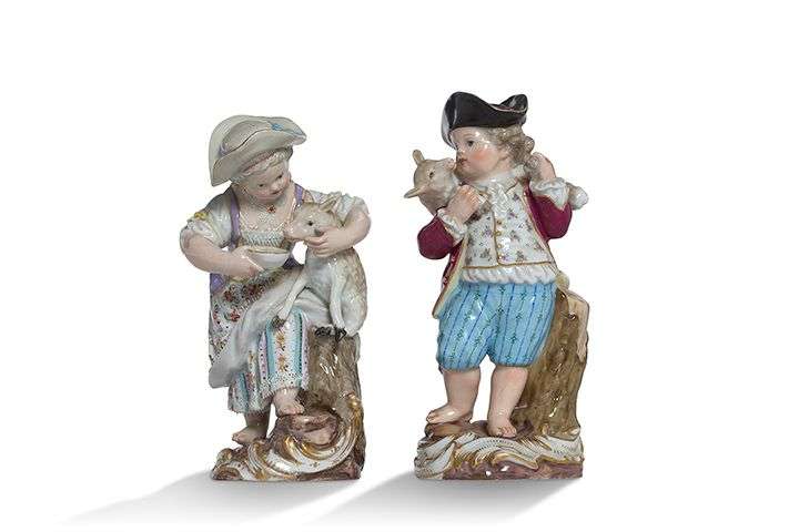 Deux sujets en porcelaine ÈmaillÈe polychrome reprÈsentant un berger et une bergËre