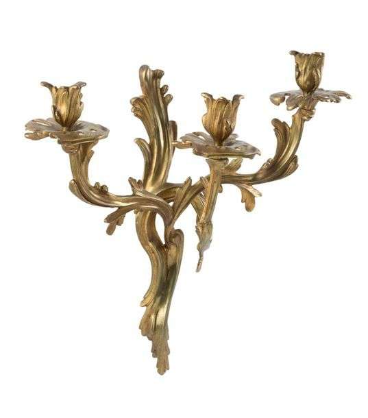 Paire d'appliques en bronze ciselÈ et dorÈ ‡ trois bras de lumiËres ‡ motif feuillagÈ