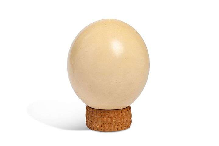 Oeuf d'autruche avec son socle en rotin tressÈ