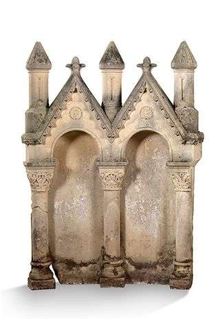 ElÈment architectural en pierre ‡ arcatures gothiques