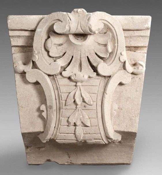 ClÈ de vo˚te de portail en pierre calcaire sculptÈe ‡ enroulements, palmet
