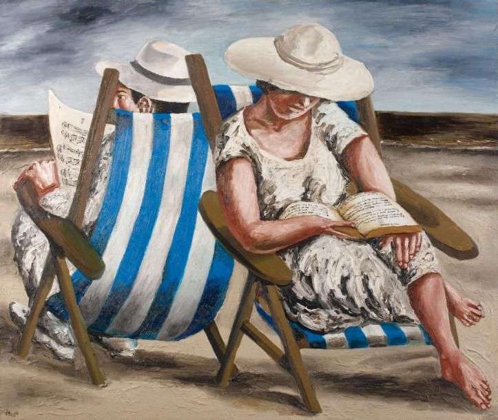 Sur la plage, 1996 Huile sur toile, monogrammée en bas à gauche, signée, titrée et datée au dos 110 x 130 cm - 431/4 x 511/4 in. Oil on canvas, monogrammed lower left, signed, titled and dated on the reverse