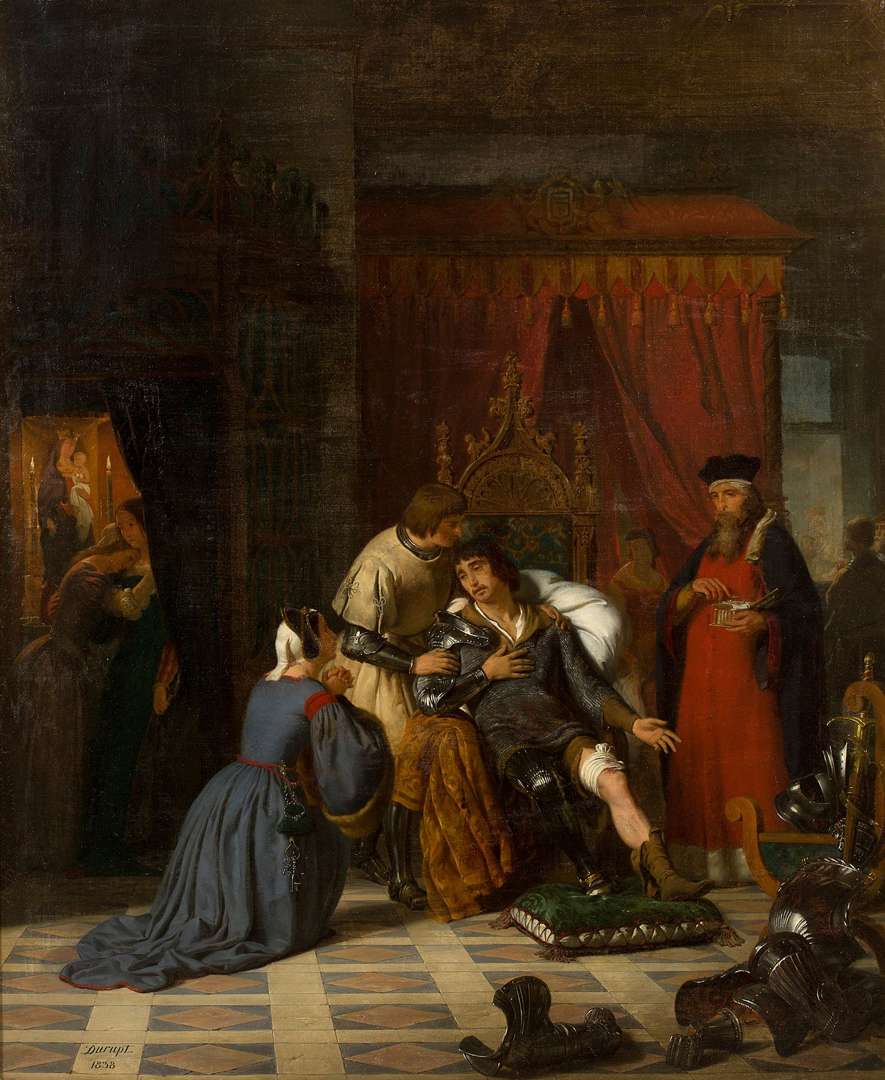 Cette même année au Salon, il a également présenté la scène suivante de l'histoire du valeureux chevalier dans un tableau intitulé Départ de Bayard de Brescia.