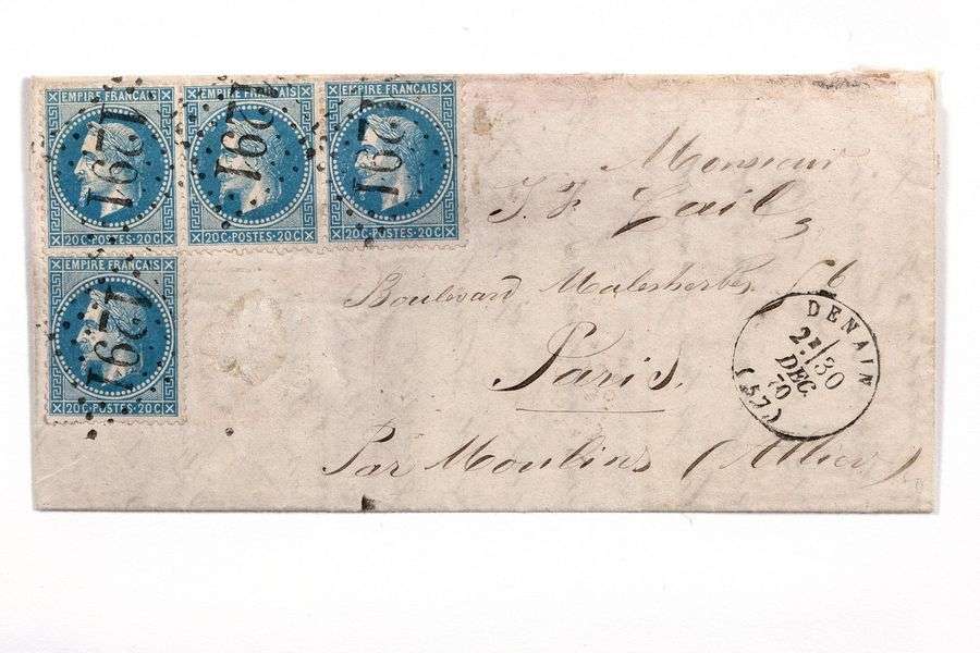 Bande de 3 et 1 ex. 20c lauré obl. GC 1291 càd DENAIN 30