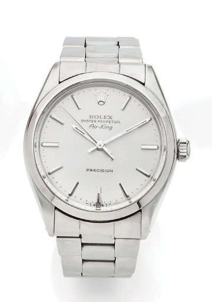 Cadran argenté avec index bâtons, points et aiguilles luminescents, trotteuse centrale et minuterie chemin de fer, signé.