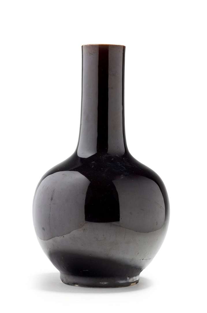 Vase bouteille tianqiuping en porcelaine émaillée noir miroir.