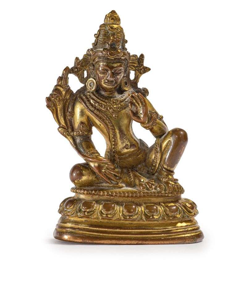 Petit sujet en bronze doré, représentant une Tara blanche, assise en lalitasana.
