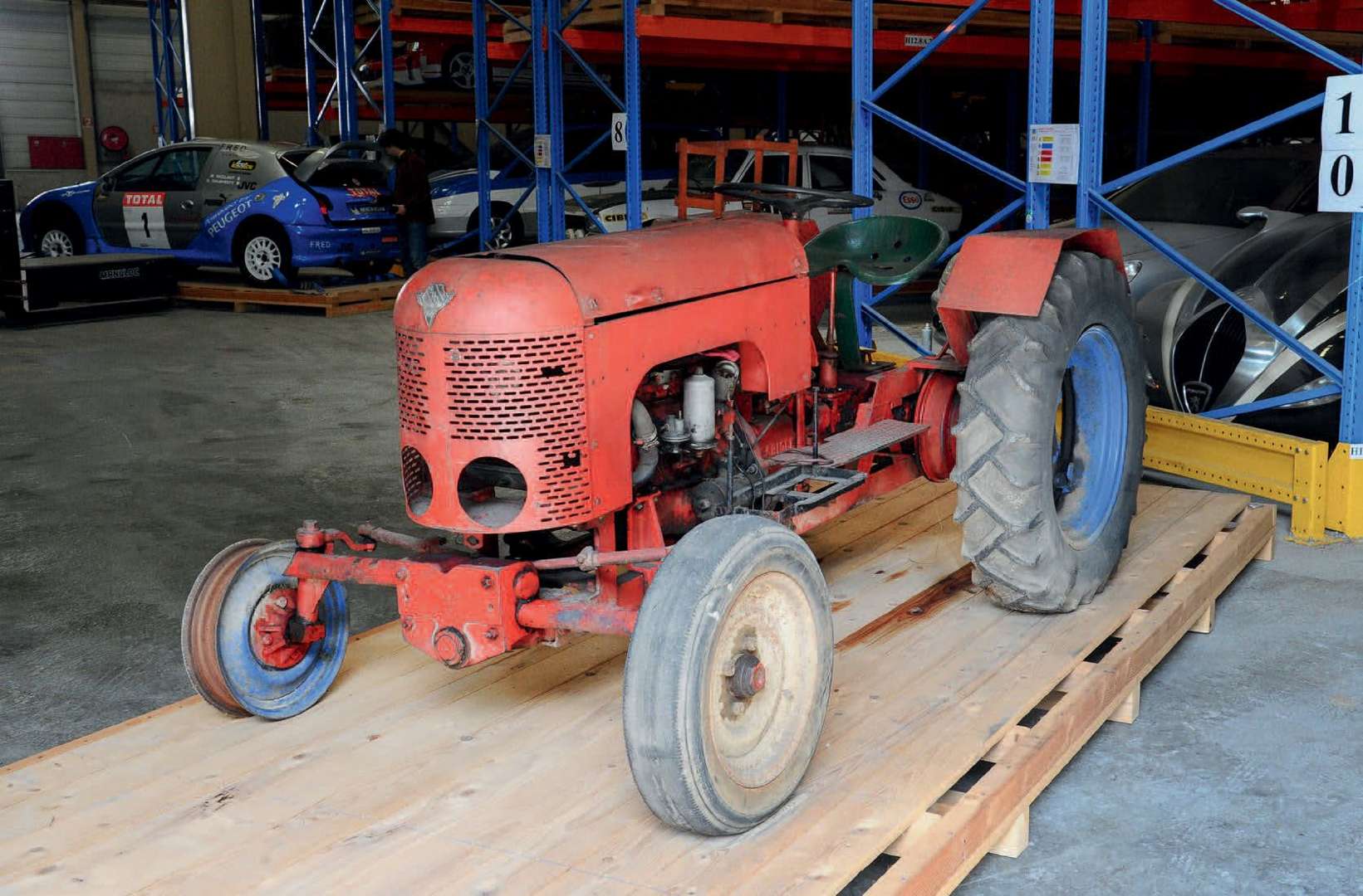 Fondée en 1948 par Lucien Babiole, la marque éponyme se spécialise dans la fabrication de tracteur à chenilles. Ces véhicules seront animés par des moteurs Peugeot dès 1950, d’abord des blocs de 203 puis de 403. Ces tracteurs se veulent avant-gardistes avec leur boîte de vitesses à rapports lents et rapides ou encore avec le système de relevage hydraulique. Le constructeur met à l’époque en avant la robustesse et la stabilité de ses engins et ira même jusqu’à proposer la garantie à vie ! La société connait un début prometteur, puis l’activité ralentit avant de cesser totalement en 1959. Babiole sera alors racheté par la marque Tracfor. L’exemplaire que nous présentons se trouve aujourd’hui dans son jus, on notera que le bloc moteur est à remplacer.