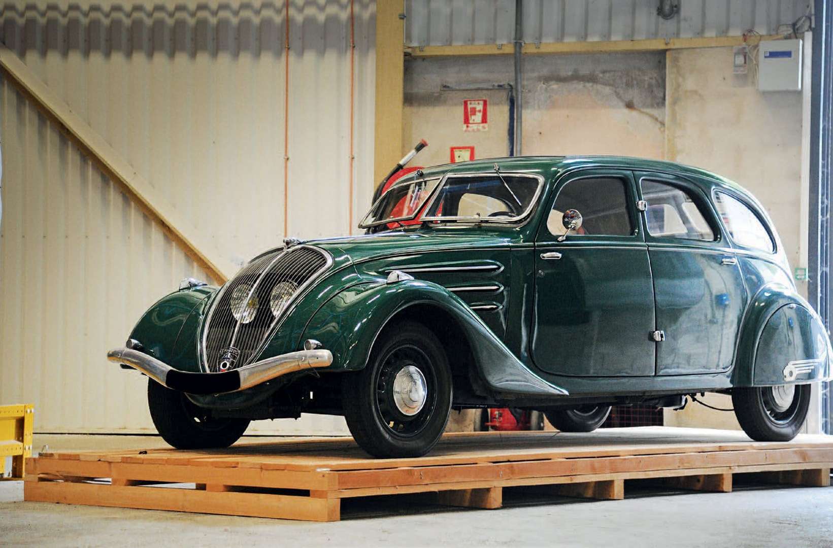 L’aérodynamisme dans l’automobile se démocratise dans les années 1930, et les constructeurs font ainsi évoluer leurs gammes. En remplacement des modèles 401 et 601 et en réponse à la Traction de Citroën, la firme sochalienne présente une auto au design américanisant, la 402. Cette auto existe dans différentes versions, de la berline au coupé-cabriolet «Eclipse», en passant par la Limousine. C’est cette dernière version qui nous intéresse ici. Son état de conservation actuel témoigne d’une restauration de grande qualité: sa peinture et son intérieur sont en bel état. Malgré le fait qu’elle n’ait que très peu roulé, cette auto est dans un état de fonctionnement satisfaisant. Voici l’opportunité d’acquérir une luxueuse française des années 1930 au style très attrayant !