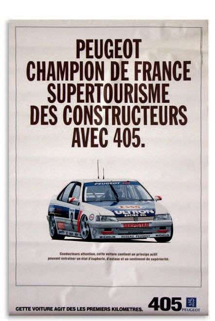 Lot de 6 affiches représentant les Peugeot 505, 405 et 406 en compétition