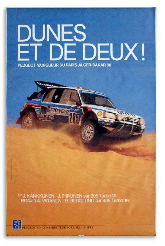 Lot de 2 affiches représentant le vainqueur du Paris Alger Dakar 1988