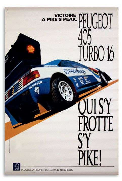 Lot de 5 affiches représentant la Peugeot 405 Turbo 16
