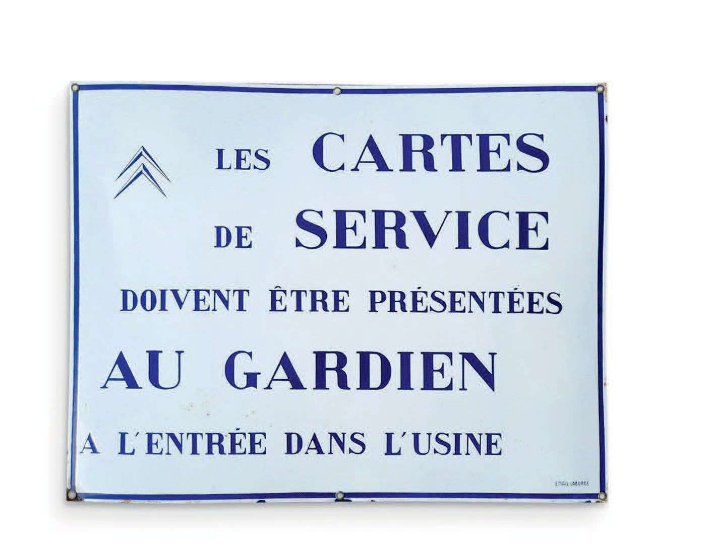 Plaque émaillée provenant de l'entrée de l'usine Citroën. Email Laborde