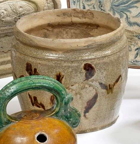 Jarre en grés sous couverte émaillée crème craquelée à décor de pétales de lotus brun, de la dynastie Lý (1009-1225) - Trân (1225-1400). Ce décor à référence bouddhique est traité de façon vivante, libre, enjouée comme les belles fresques des grottes préhistoriques.