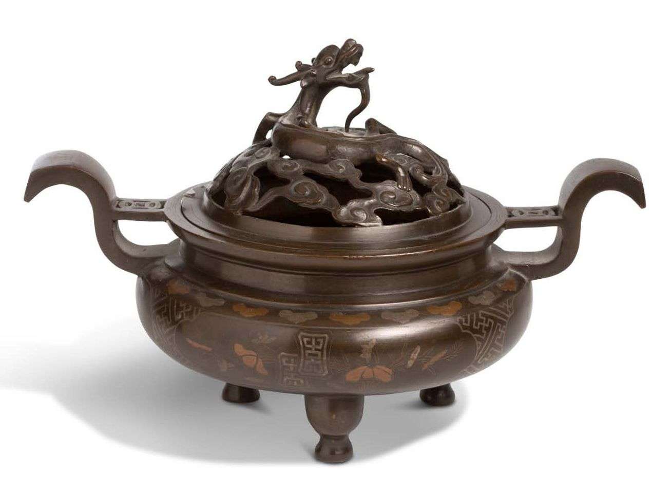 Le couvercle ajouré de nuages est surmonté d’un dragon.