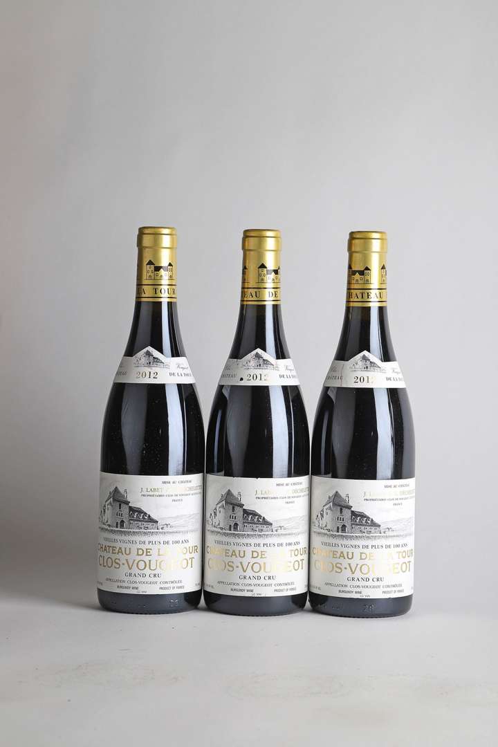 3 B CLOS DE VOUGEOT VIEILLES VIGNES DE PLUS DE 100 ANS (Grand Cru) (3 e.l.a| 1 clm.a| 3 contre-étiquettes légèrement abimées) - 2012 - Château de la Tour