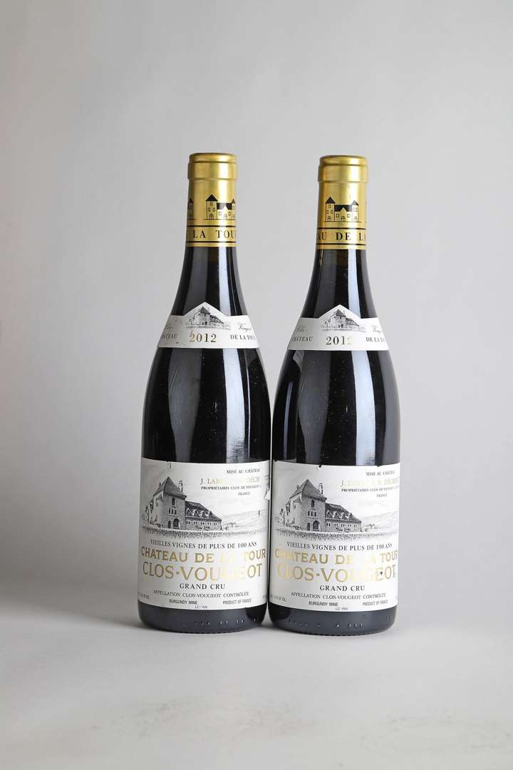 2 B CLOS DE VOUGEOT VIEILLES VIGNES DE PLUS DE 100 ANS (Grand Cru) (1 e.a| 1 e.t.a| contre-étiquettes légèrement abimées) - 2012 - Château de la Tour
