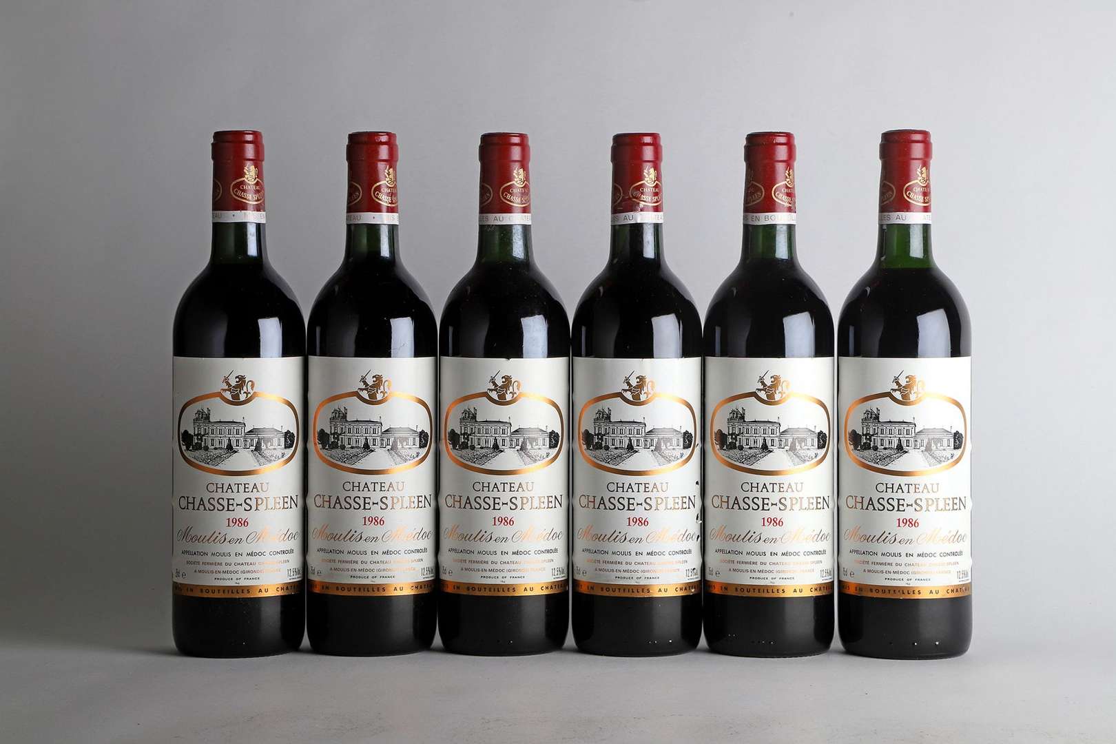 6 B CHÂTEAU CHASSE SPLEEN (Caisse Bois d'origine) (2 B.G| 2 T.L.B.+| 2 e.a.) - 1986 - Moulis