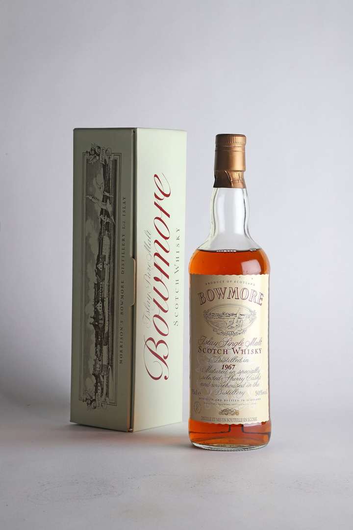 1 B ISLAY SINGLE MALT SCOTCH WHISKY SHERRY CASKS FINISH 75 cl 50% (étui d'origine) (distillé en 1967. importateur Auxil) (M.B.) - 1967 - Bowmore