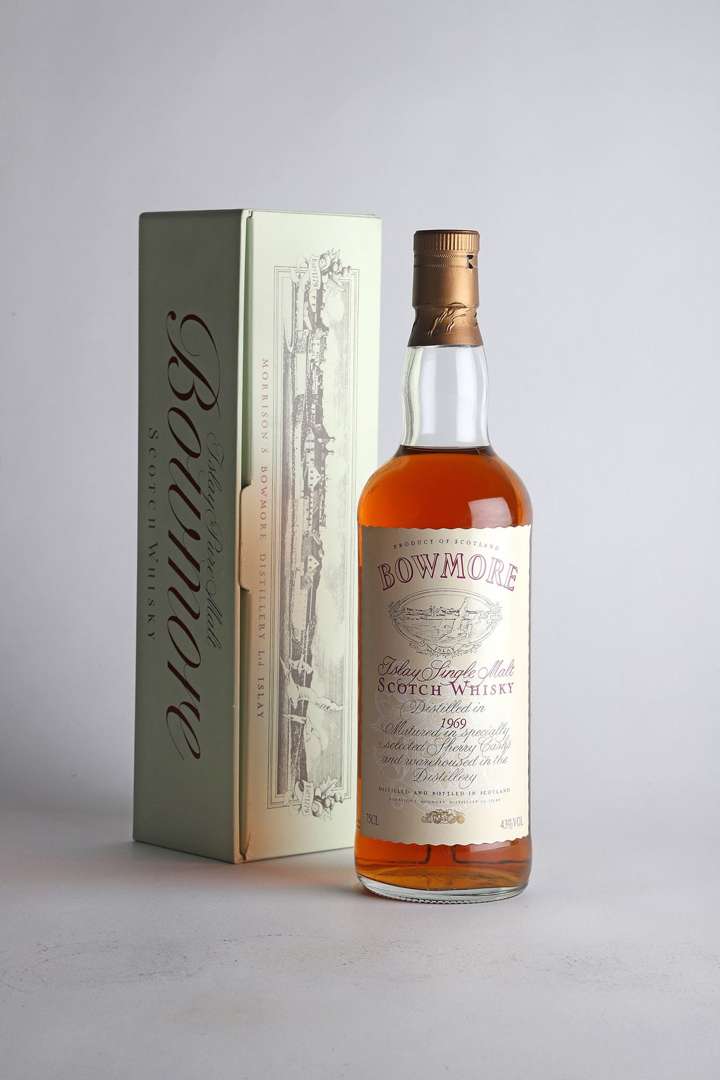 1 B ISLAY SINGLE MALT SCOTCH WHISKY SHERRY CASKS 75 cl 43% (étui d'origine) (distillé en 1969| importateur Auxil) - 1969 - Bowmore