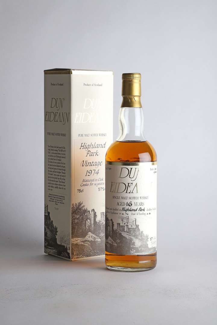1 B SINGLE MALT SCOTCH WHISKY DUN EIDEANN 16 ANS D'ÂGE 75 cl 57% (étui d'origine) (cask n° 7/37| distillé le 11.6.1974| mise le 4.91| Edition limitée n° 53/360) (L.B.) - 1974 - Highland Park