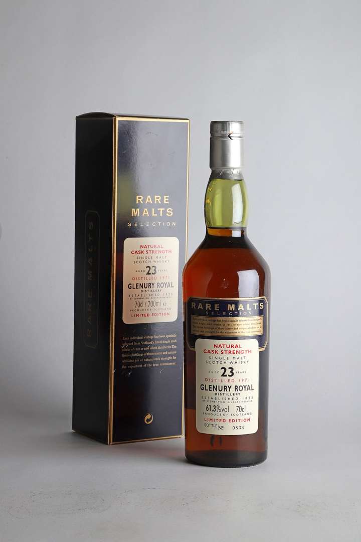 1 B SINGLE MALT SCOTCH WHISKY NATURAL CASK STRENGTH 23 ANS D'ÂGE 70 cl 61,3% (étui d'origine) (distillé en 1975| Edition limitée n° 834) - NM - Glenury Royal