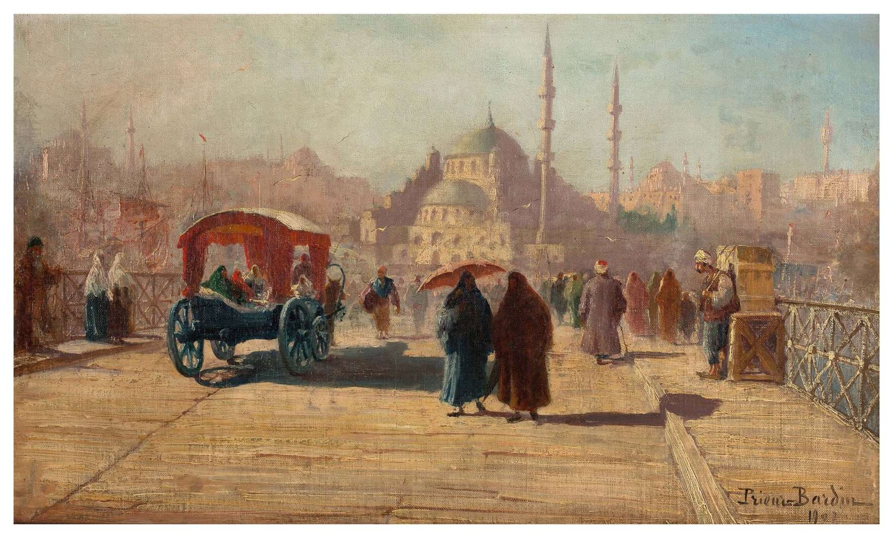 OEUVRE EN RAPPORT Eugène-Antoine Prieur-Bardin (confondu à tort avec François-Léon Prieur-Bardin), Le pont de Galata, Constantinople, 1901, huile sur toile, 33,5 x 56,5 cm, Vente, Regards sur l'Orient,