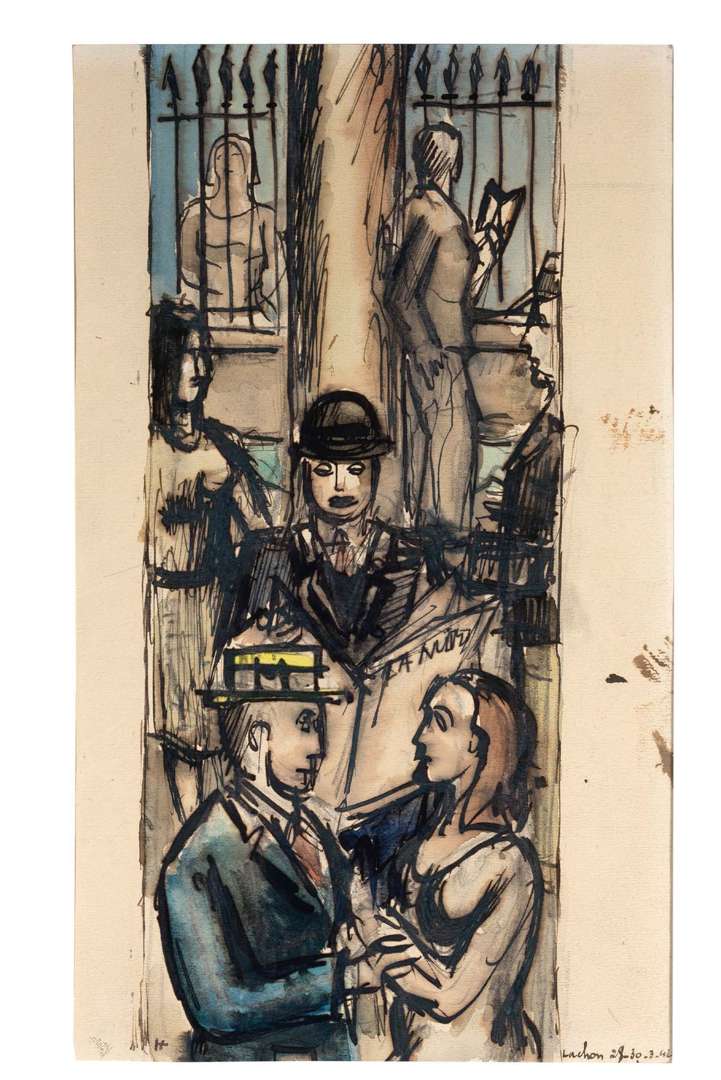 Watercolor and Indian ink on paper, signed with the artist's initial «H» lower left, located «Luchon» and dated «29[?]-30-3-[19]42» lower right, signed, located «Luchon» and dated «mars 42» with a collector's stamp on the reverse