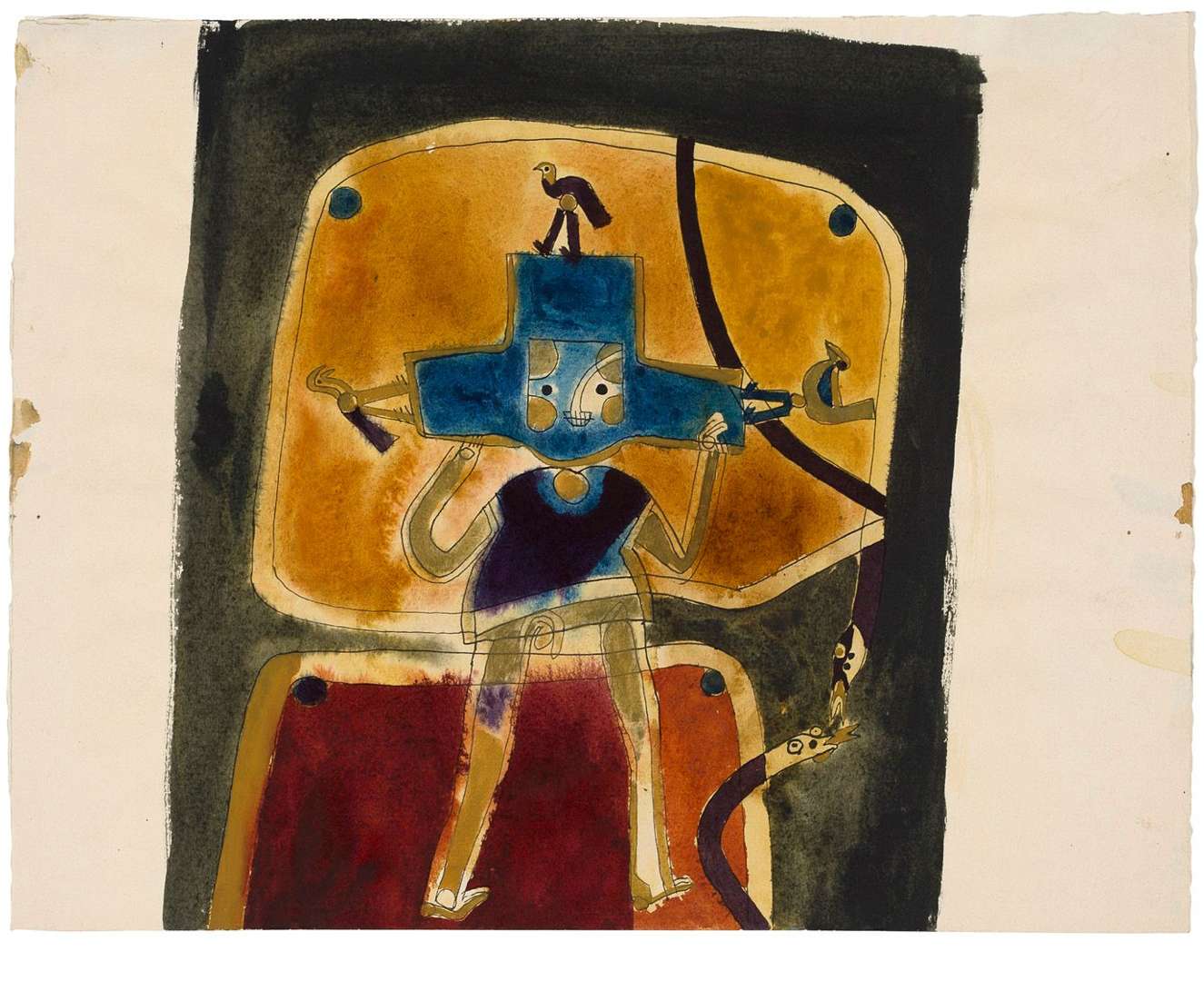 Ink and watercolour on paper, signed with graphite lower right