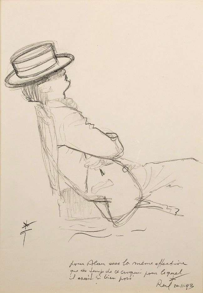 Crayon sur papier, signée en bas à gauche et portant une dédicace contresignée et datée de 1993 en bas à droite
