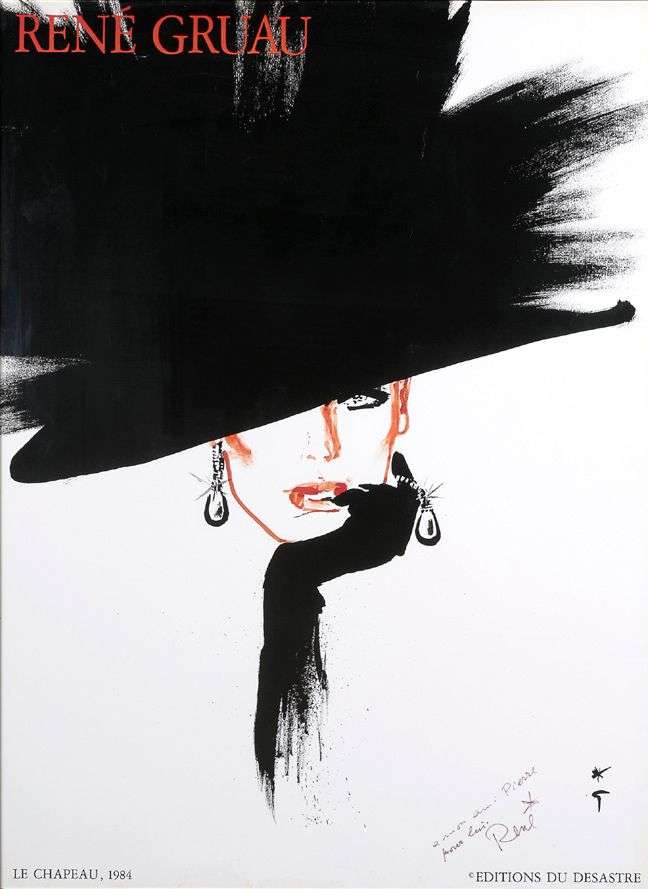 Poster RENE GRUAU Le Chapeau, 1984, Edition du Désastre, dédicated and signed lower right